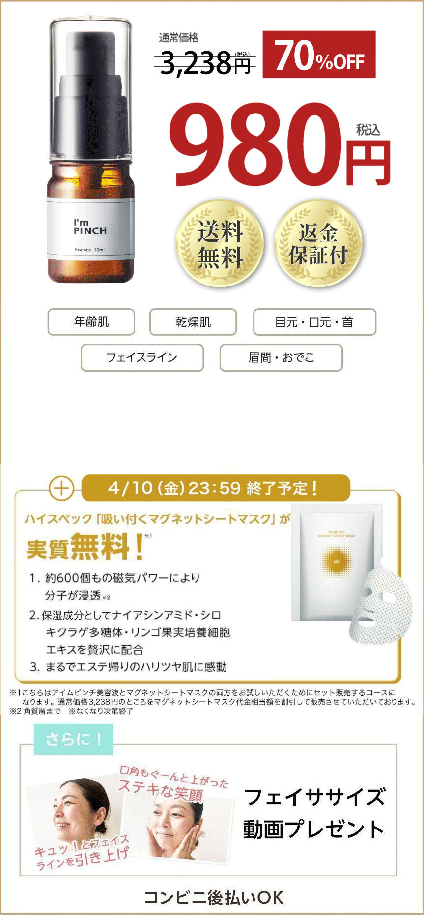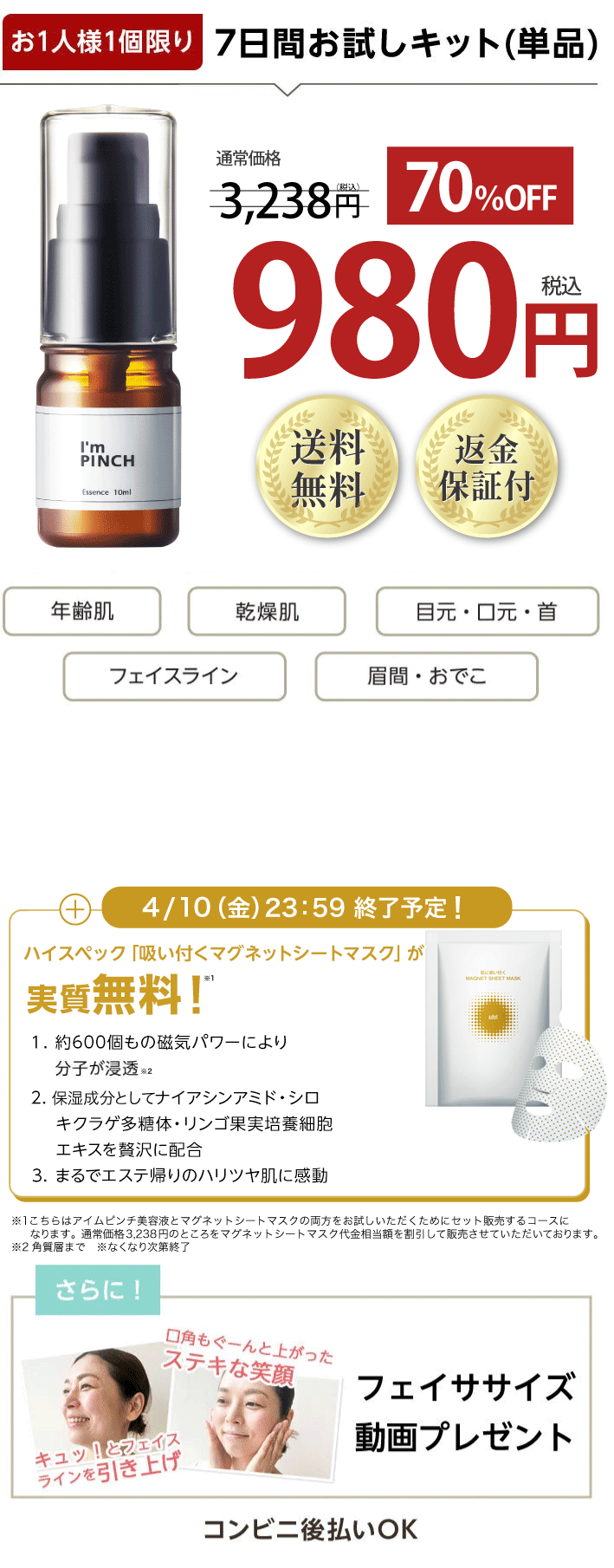- はい、併用可能です。アイムピンチの美容成分を逃さないためにも「アイムピンチ美容液→オールインワンゲル」の順番でお使いくださいませ。