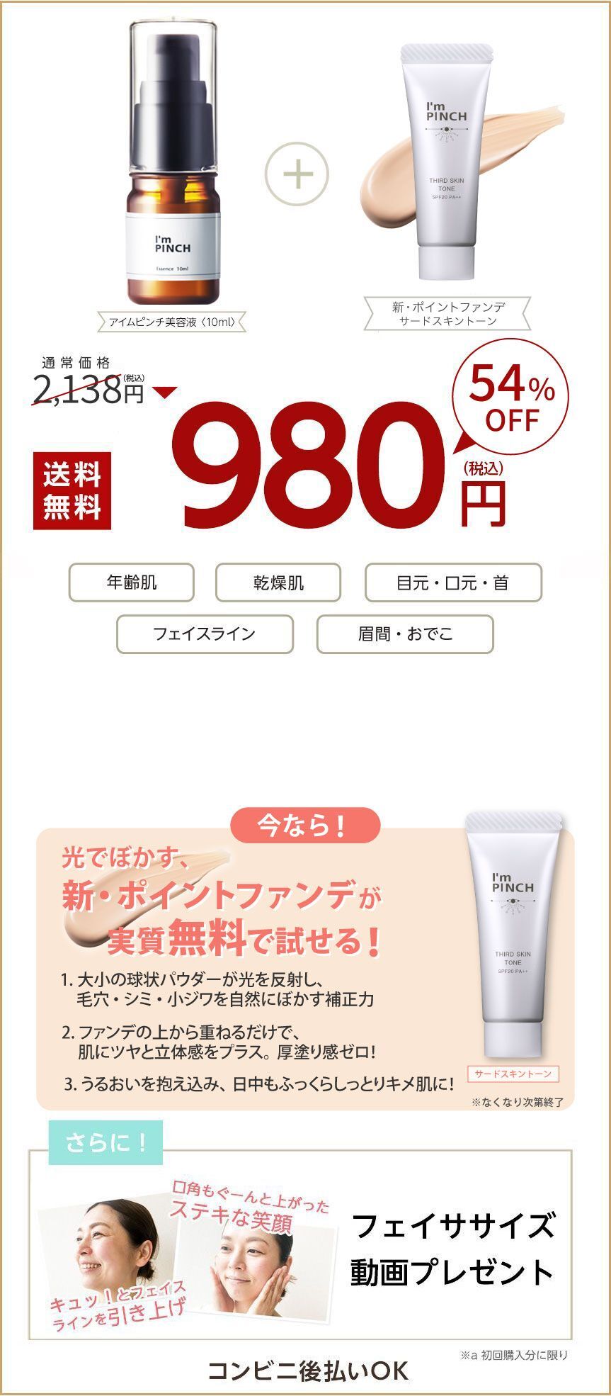 - はい、併用可能です。アイムピンチの美容成分を逃さないためにも「アイムピンチ美容液→オールインワンゲル」の順番でお使いくださいませ。